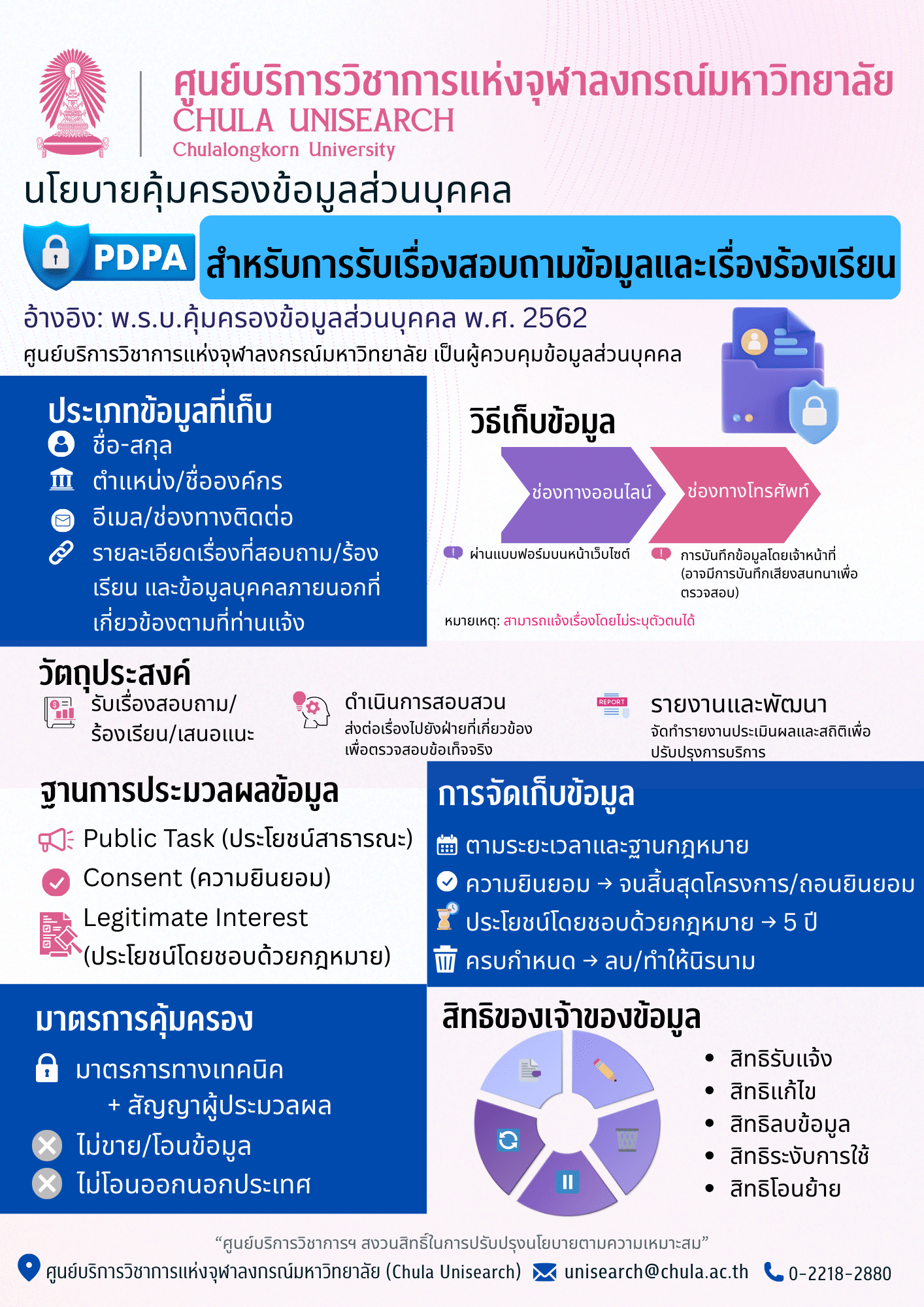 ทุกข้อสอบถามและเรื่องร้องเรียน เราดูแลข้อมูลส่วนบุคคลของคุณอย่างปลอดภัย มั่นใจในทุกช่องทางการติดต่อ ไม่ว่าจะสอบถามหรือเสนอแนะ ข้อมูลของคุณจะถูกนำไปใช้เพื่อดำเนินการและปรับปรุงการบริการเท่านั้น