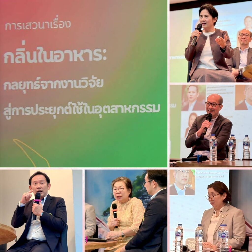 โดยในช่วงสายเป็นการเสวนาวิชาการในหัวข้อ “กลิ่นในอาหาร: กลยุทธ์จากงานวิจัยสู่การประยุกต์ใช้ในอุตสาหกรรม” โดยได้รับเกียรติจากวิทยากรผู้ทรงคุณวุฒิ จำนวน 5 ท่าน ได้แก่