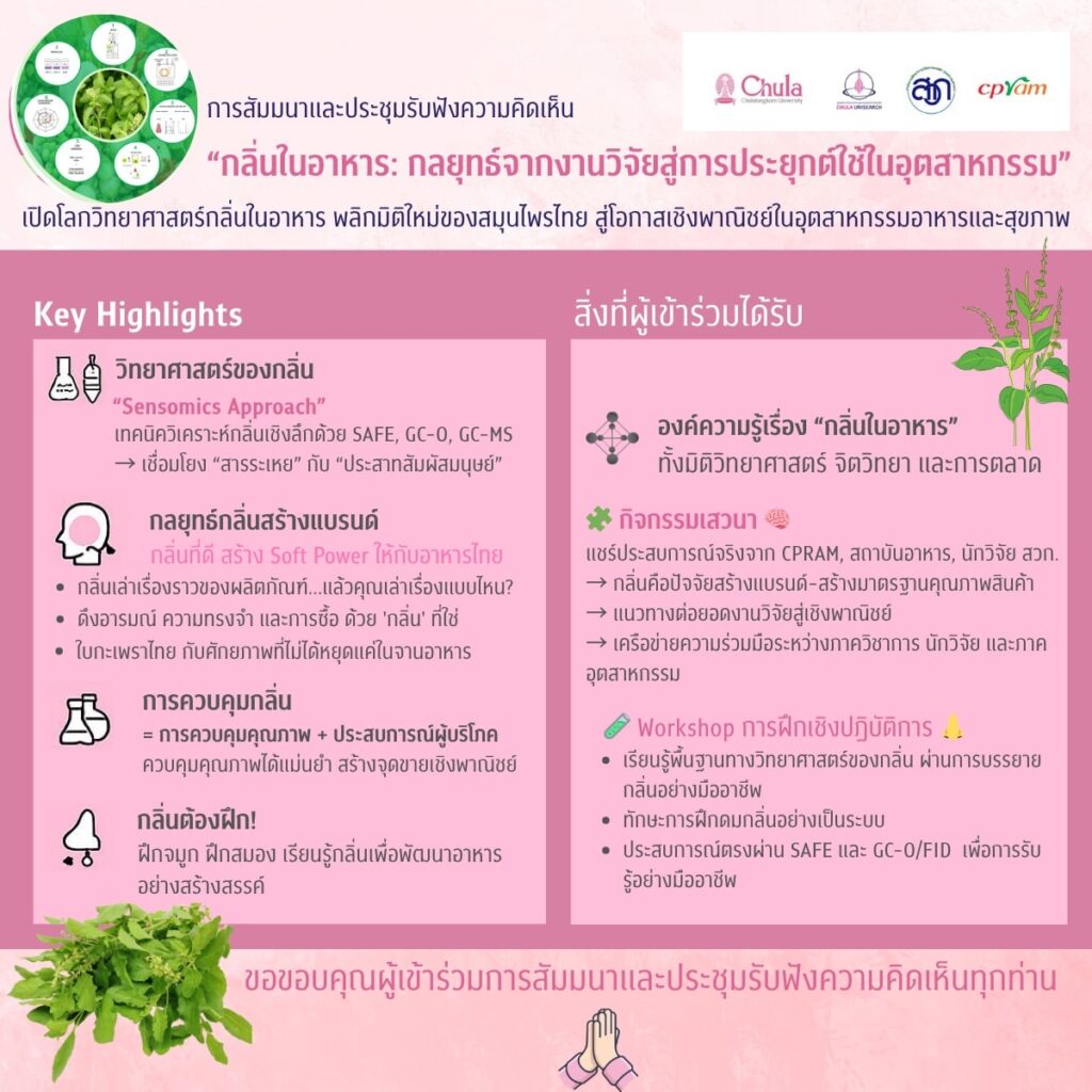 “กลิ่นในอาหาร: กลยุทธ์จากงานวิจัยสู่การประยุกต์ใช้ในอุตสาหกรรม” เปิดโลกวิทยาศาสตร์กลิ่นในอาหาร พลิกมิติใหม่ของสมุนไพรไทย สู่โอกาสเชิงพาณิชย์ในอุตสาหกรรมอาหารและสุขภาพ