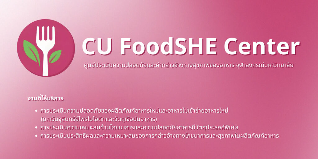 ศูนย์ประเมินความปลอดภัยและคำกล่าวอ้างทางสุขภาพของอาหาร จุฬาลงกรณ์มหาวิทยาลัย (CU Food Safety and Health Claim Evaluation Center: CU FoodSHE Center) ดำเนินงานภายใต้ศูนย์บริการวิชาการแห่งจุฬาลงกรณ์มหาวิทยาลัย