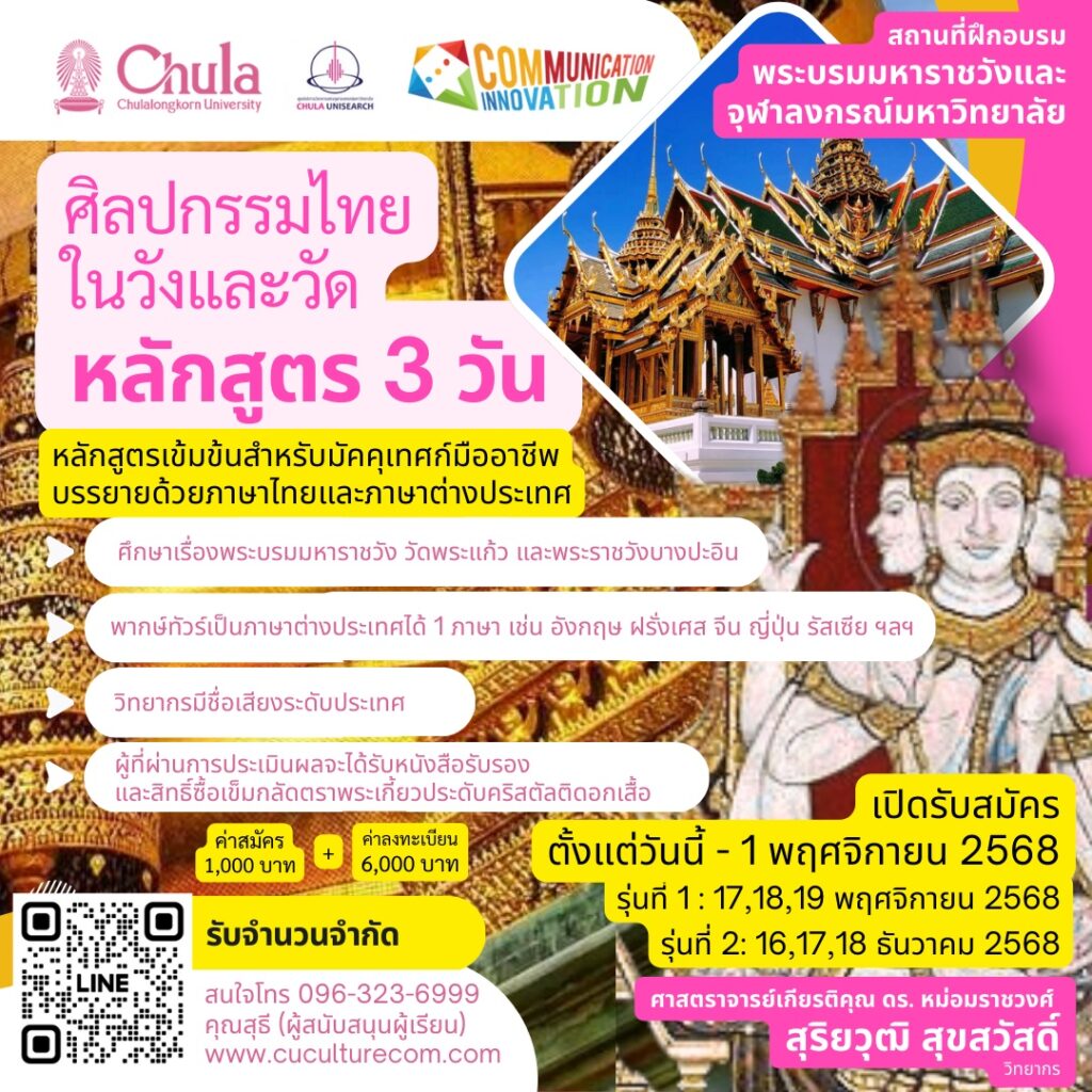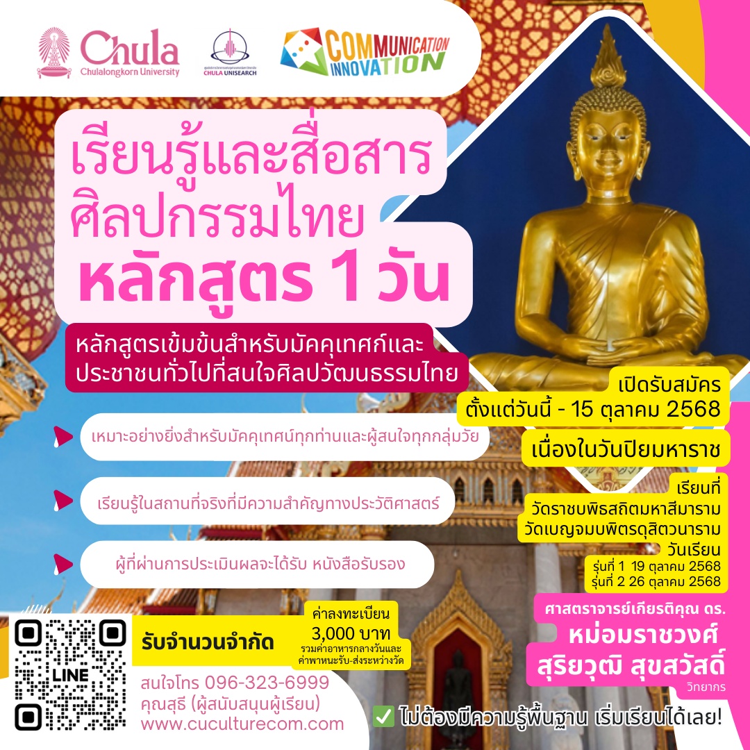 หลักสูตรระยะสั้นเพียง 1 วัน เหมาะสำหรับผู้ที่ต้องการเรียนรู้โครงสร้างและคุณค่าศิลปกรรมไทยในเวลาอันจำกัด